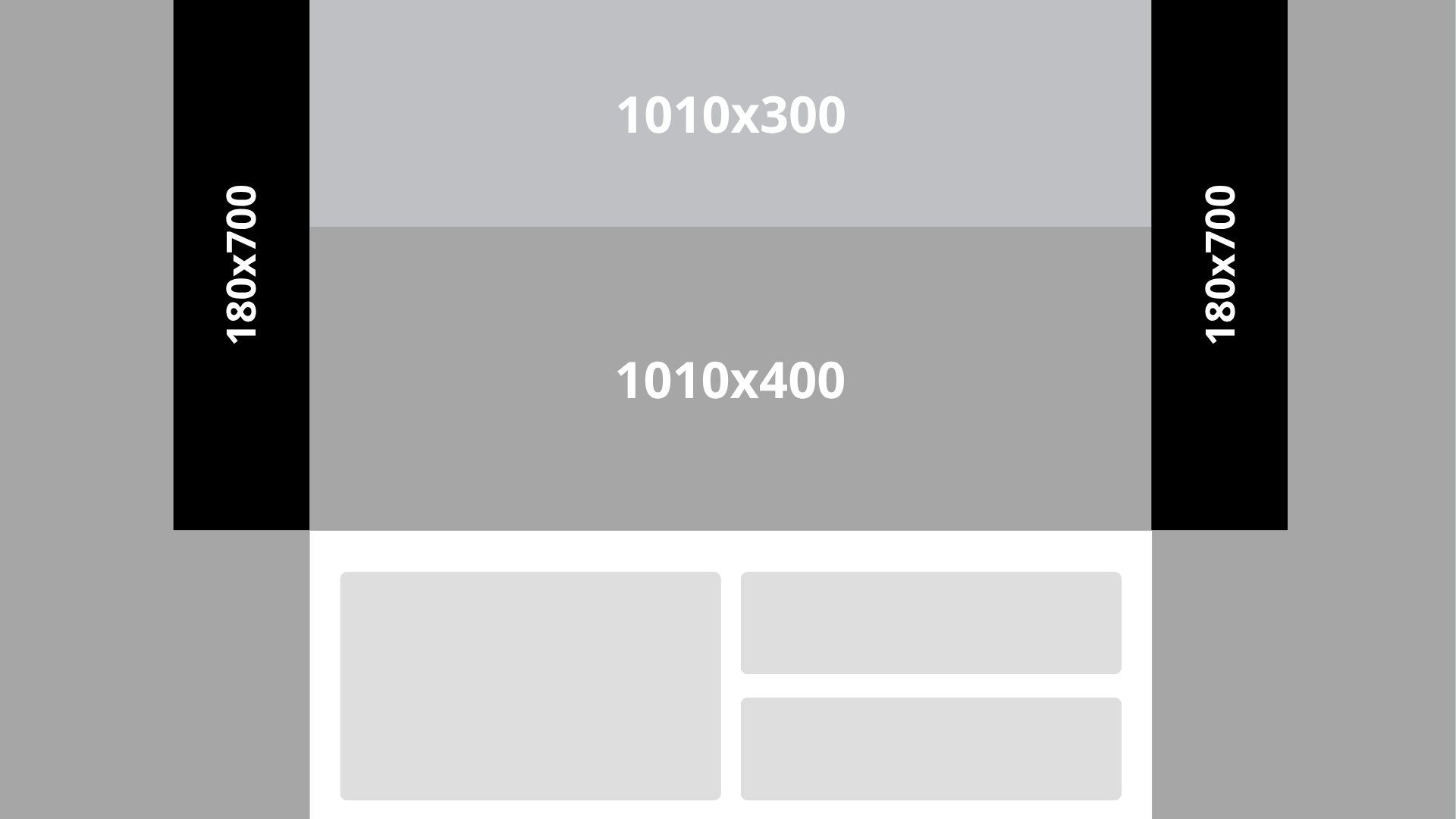 Our Wallpaper covers the entire height of the screen, creates a lot of attention and is perfect for whether you want static or dynamic content. The product includes two 180x700 formats. These allow for animated ads and provide the option for content that can change or move on the screen. With this flexible approach, advertisers can customize and optimize their campaigns to create either a strong, static presence or dynamic and engaging content.